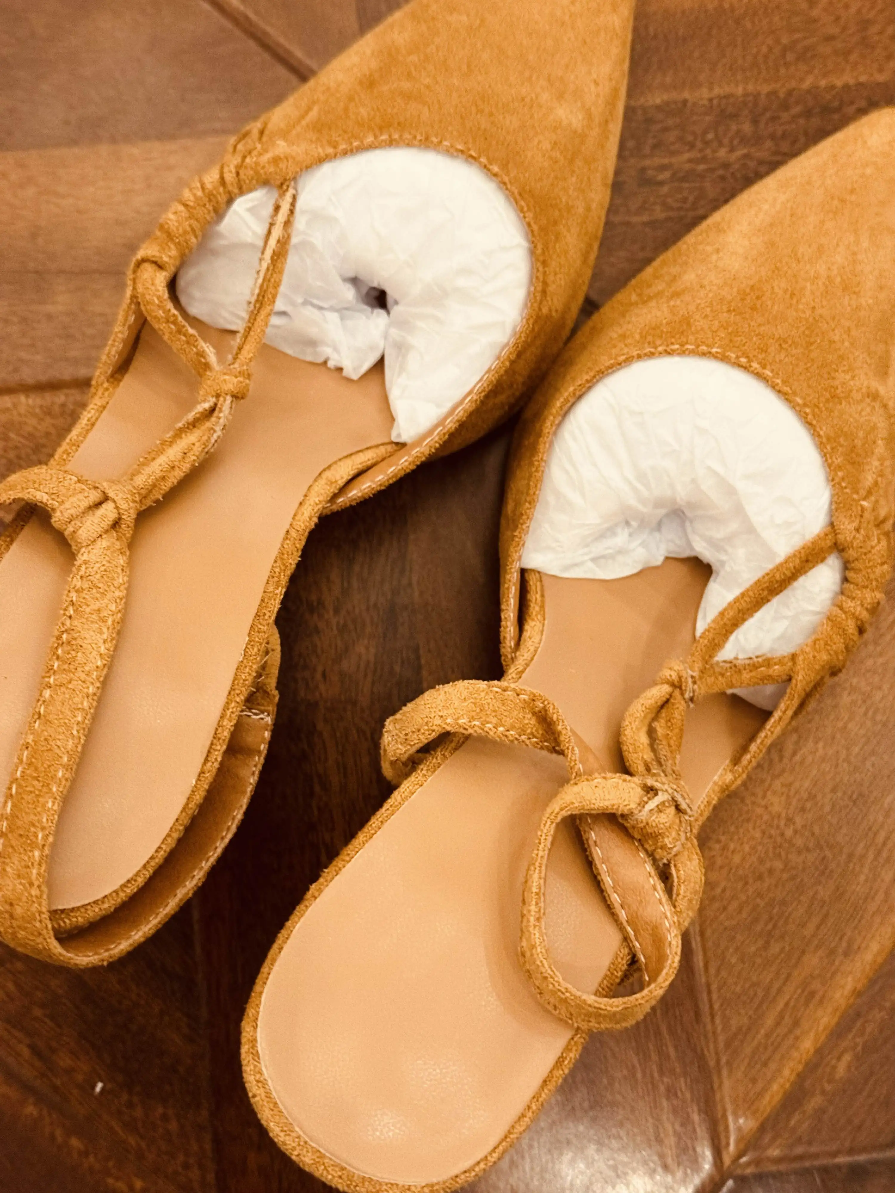 รองเท้าแตะแฟชั่นสำหรับ2025รองเท้าบัลเล่ต์เชือกผูกโบว์สีเบจตาข่ายสำหรับผู้หญิงรองเท้าบัลเล่ต์ # รองเท้าบัลเล่ต์