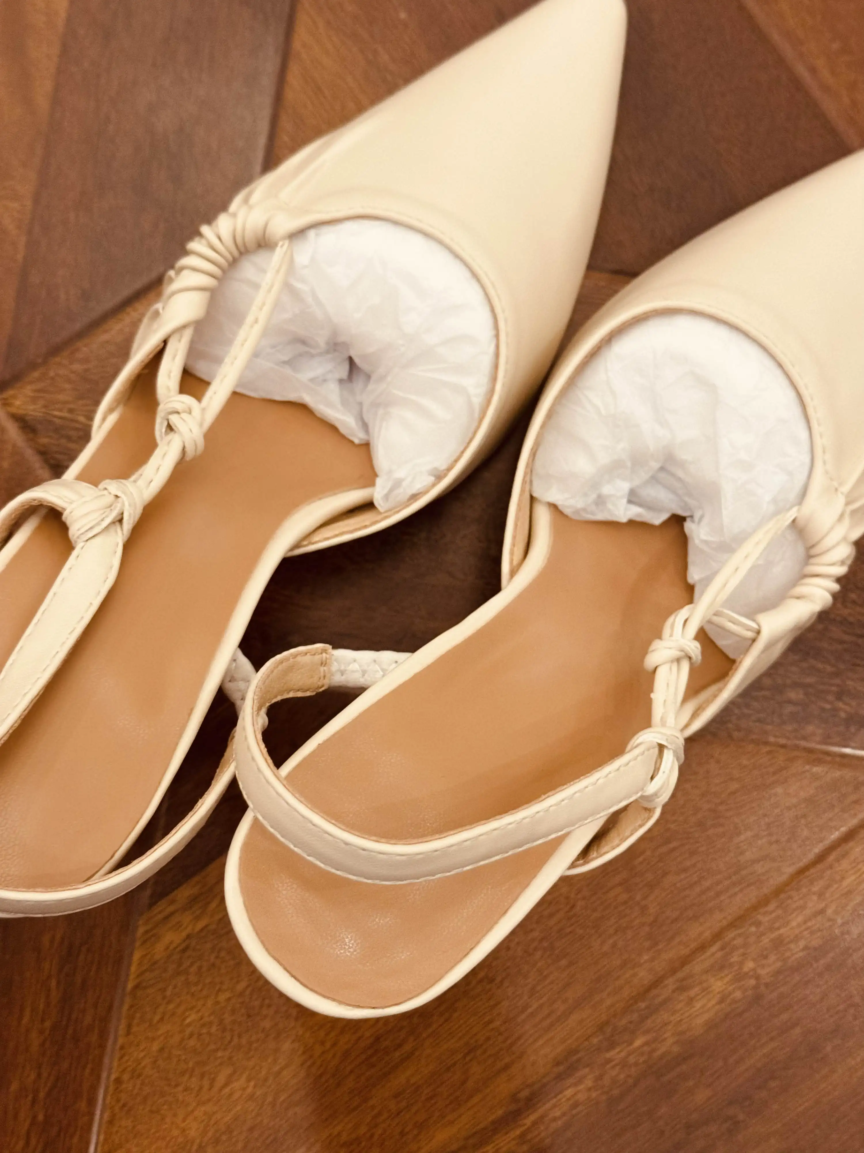 รองเท้าส้นสูงบางแบบผูกโบว์ปลายแหลมสไตล์วินเทจสำหรับผู้หญิงโลโก้ตามสั่ง